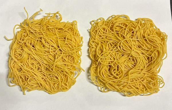 「蒸し焼き」にすることで歯ごたえがあり麺ののびも少なく日持ちの良い麺となります。